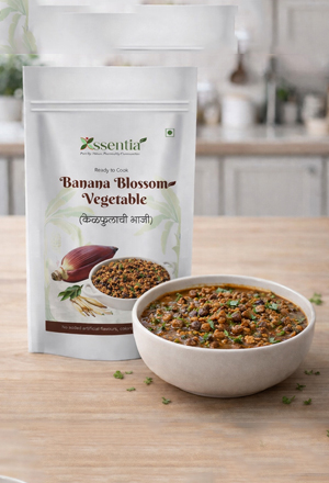 Traditionally cleaning banana flower is time-consuming. Xssentia Banana Flower Bhaji is thoughtfully processed to retain its natural flavour while offering convenience for home cooking.
