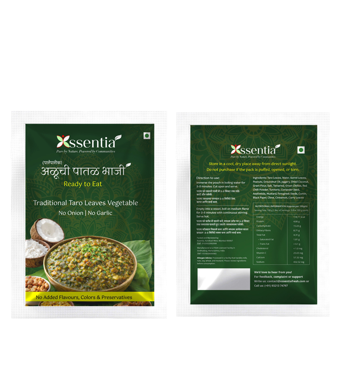 Enjoy the comforting, traditional taste of Maharashtra with our Ready to Eat Aluchi Patal Bhaji, made using an authentic homemade-style recipe. This delicious colocasia (arbi) leaves curry is fully cooked and ready in just 5 minutes — perfect for busy days, travel, or quick traditional meals.
